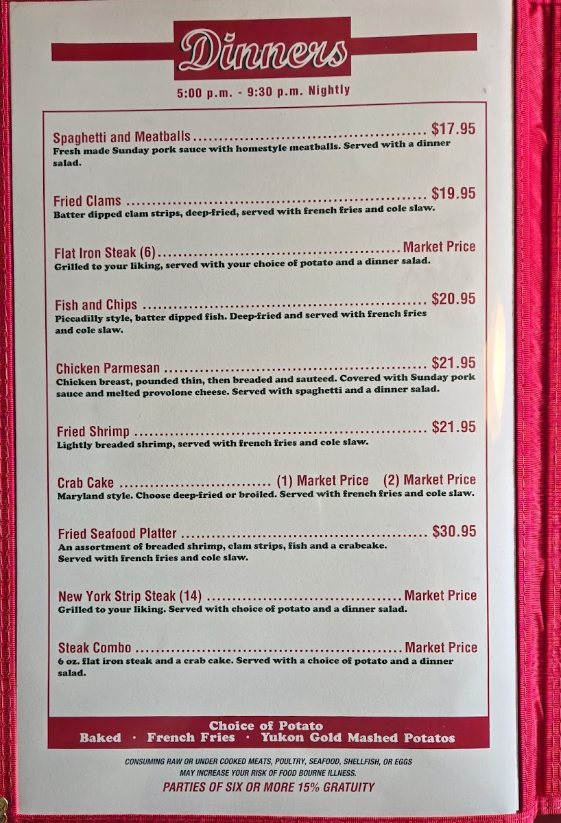 new york strip steak and crab cake, deep fried or broiled; served with choice of potato and a dinner salad